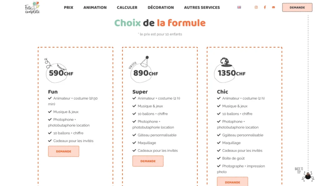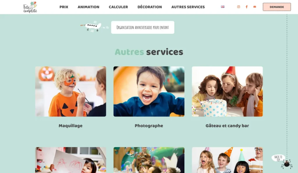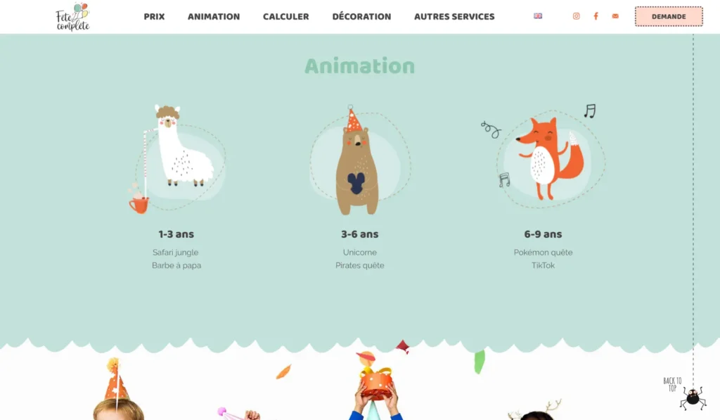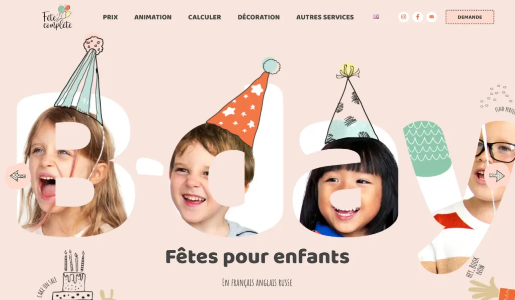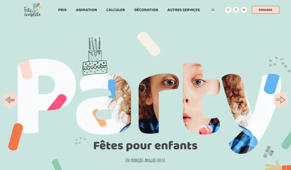 Лендинг для организатора детских праздников Fete Complete