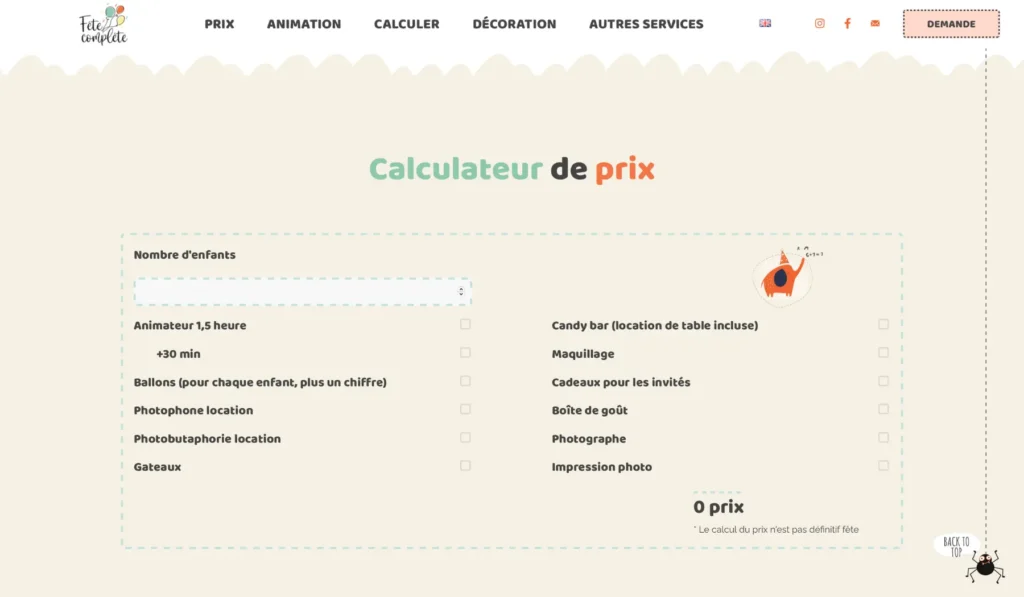 Калькулятор стоимости – помогает родителям легко рассчитать цену праздника и ускоряет процесс заказа.