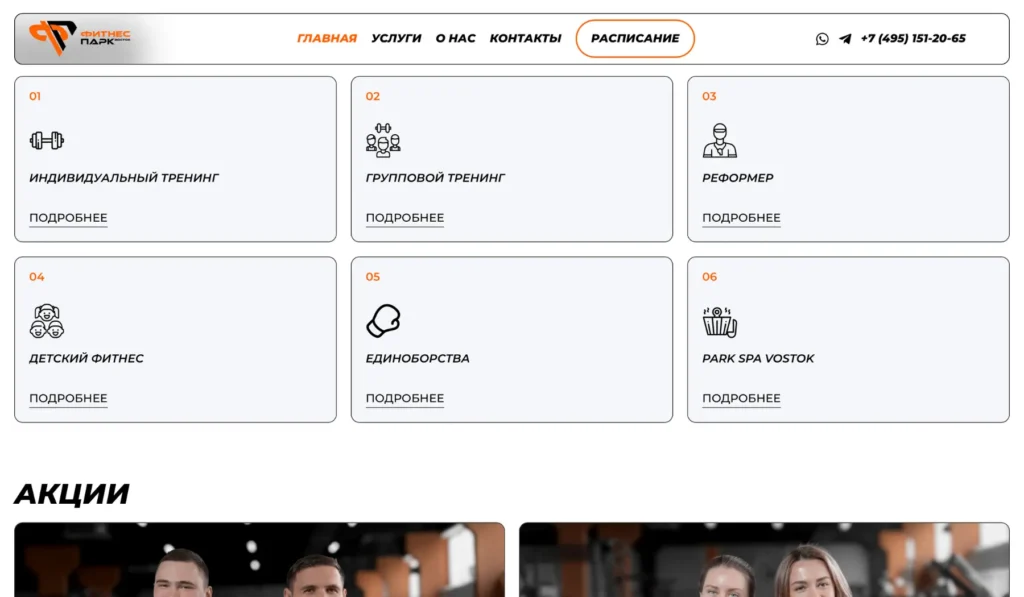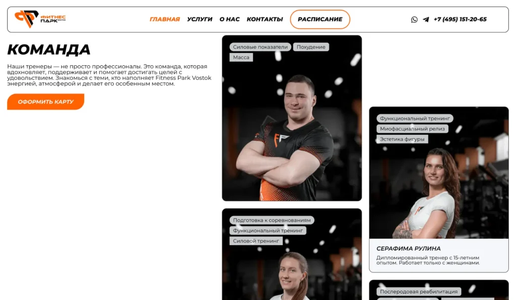 Многостраничный сайт фитнес-клуба Fitness Park Vostok
