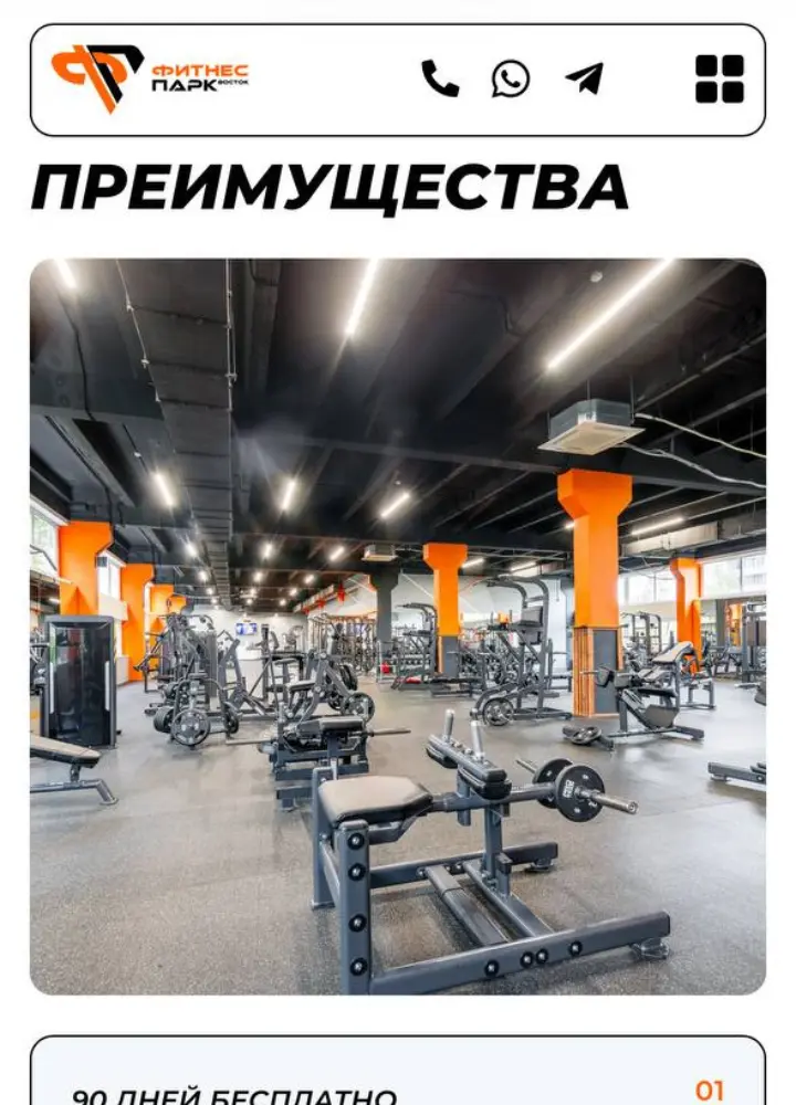 Удобная и логичная навигация по направлениям и услугам клуба;