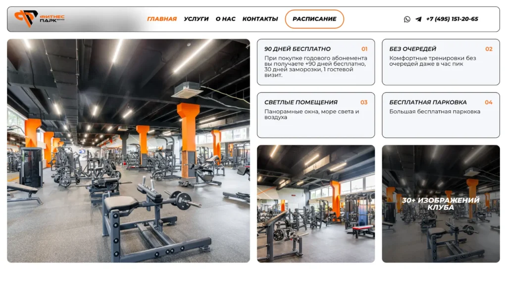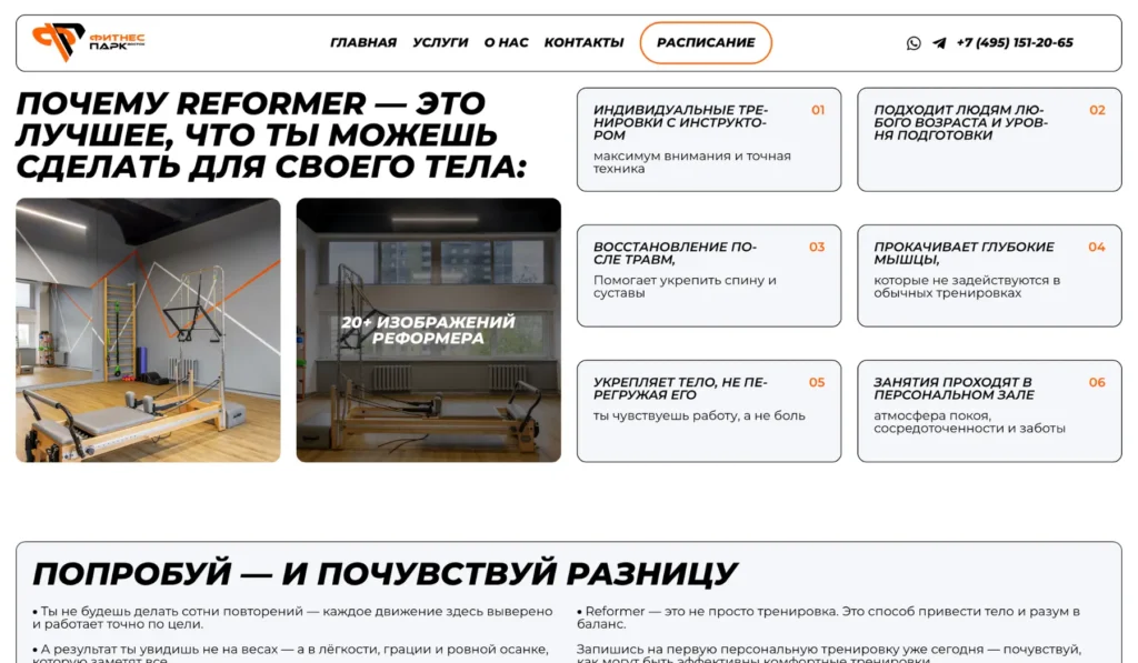 Проект демонстрирует, как сочетание дизайна, анимаций и структуры помогает эффективно презентовать фитнес-клуб и привлекать новых клиентов, а также максимально автоматизировать онлайн-регистрацию.