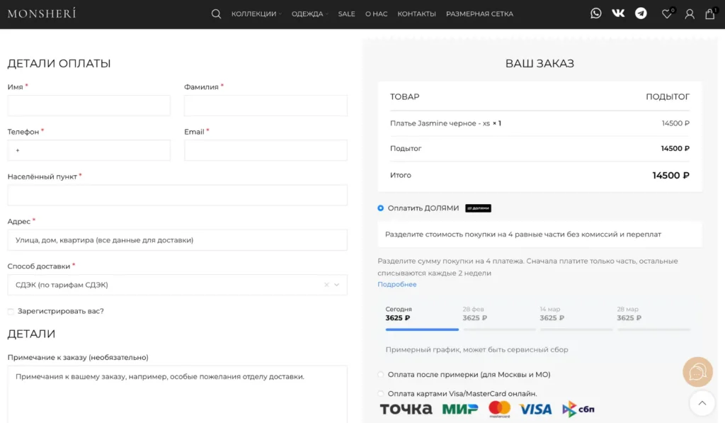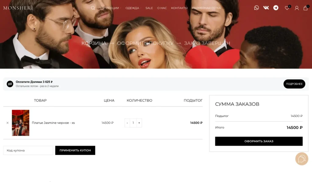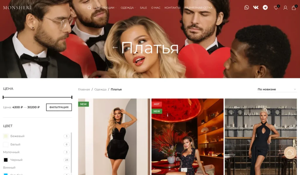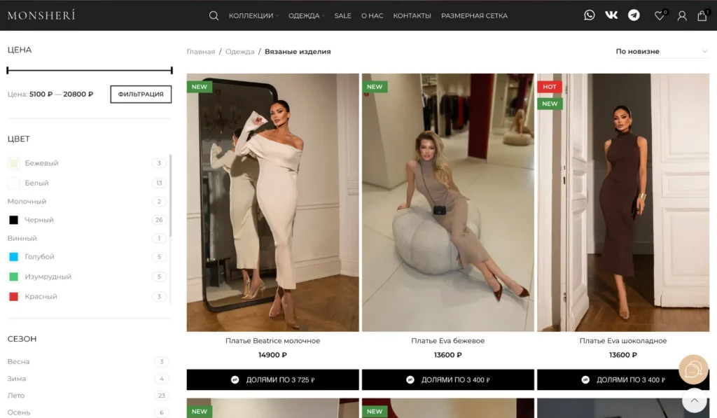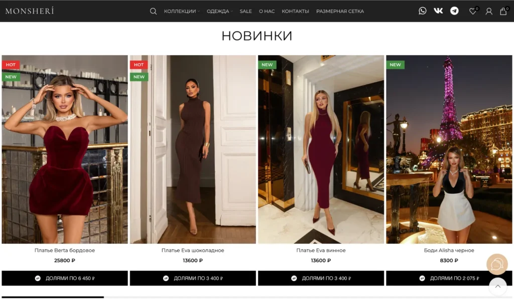 Разработан интернет-магазин для популярного бренда Monsheri, в котором удобство пользователей сочетается с эффектной визуальной подачей товаров.