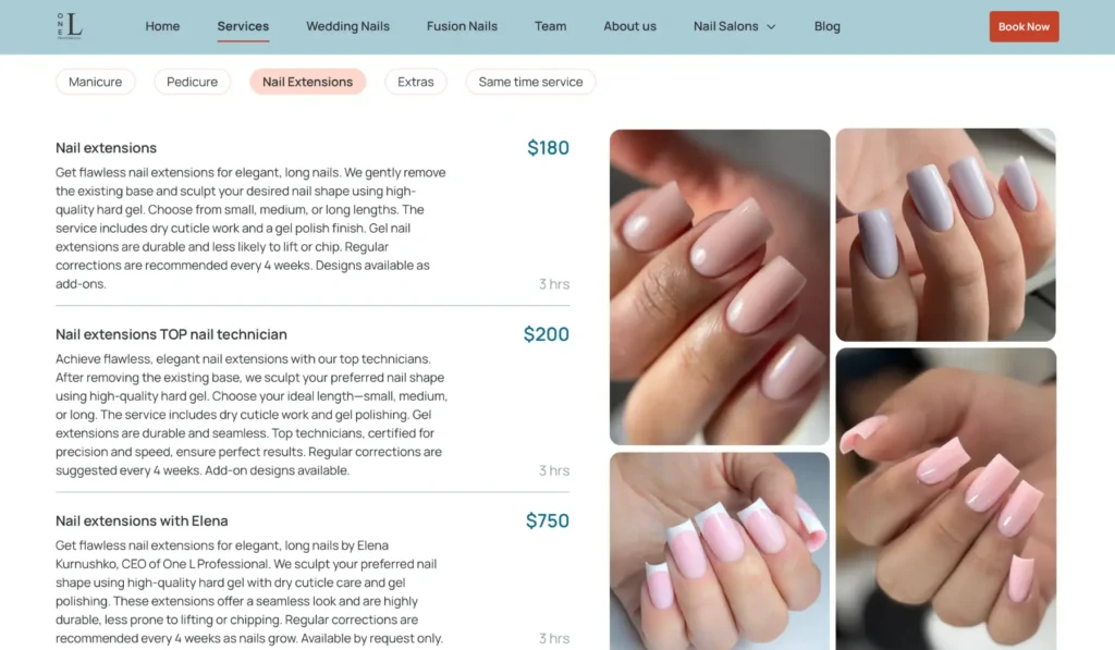 Многостраничный сайт студии маникюра One L Professional Nail Studio