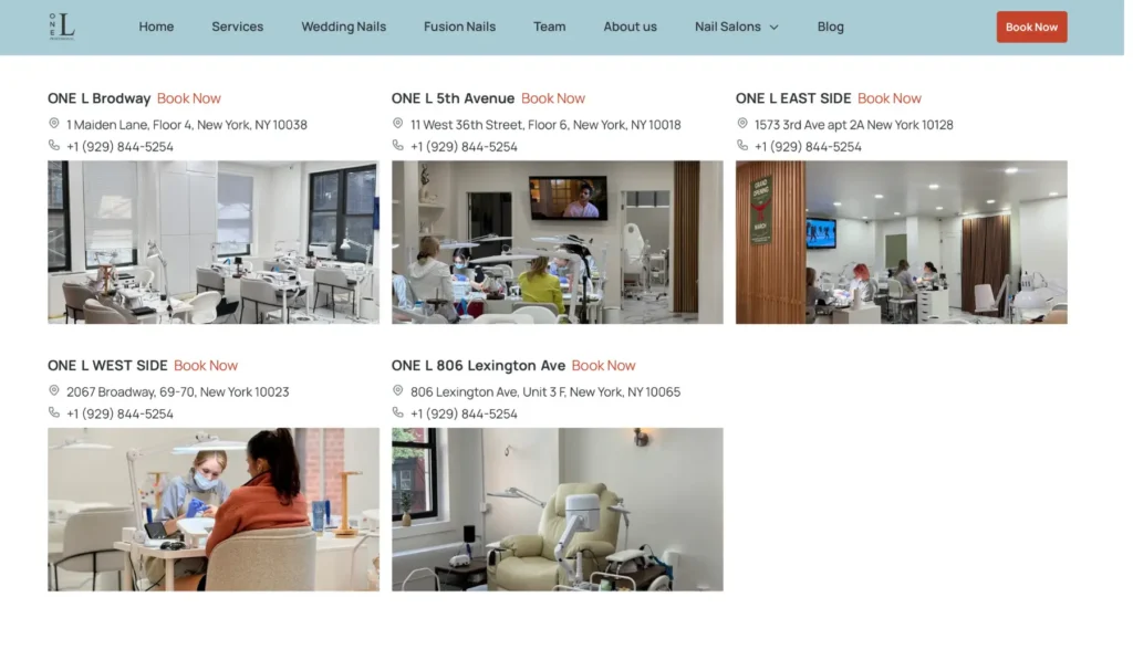 Разработан многостраничный сайт для студий маникюра, работающех в Нью-Йорке и Майами. При создании дизайна учитывалась специфика американской аудитории и требования локального рынка. Учтены пожелания заказчика и предпочтения пользователей:
