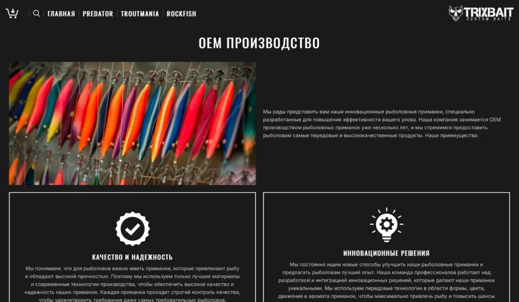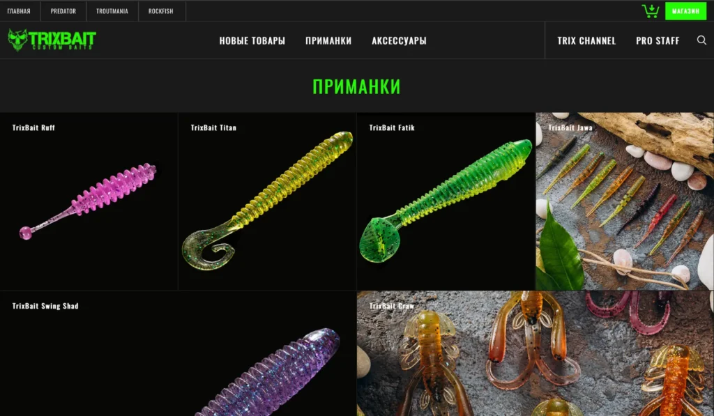 Создан интернет-магазин для производителя силиконовых приманок Trixbait, сочетающий удобство, стиль и четкую структуру каталога.